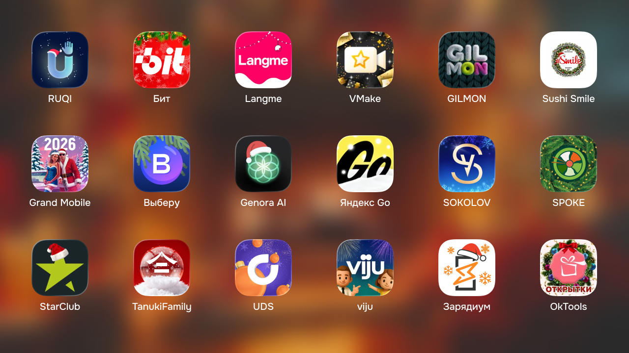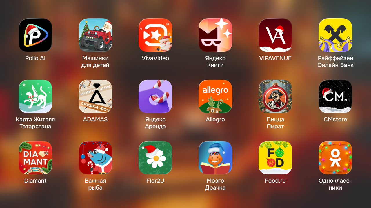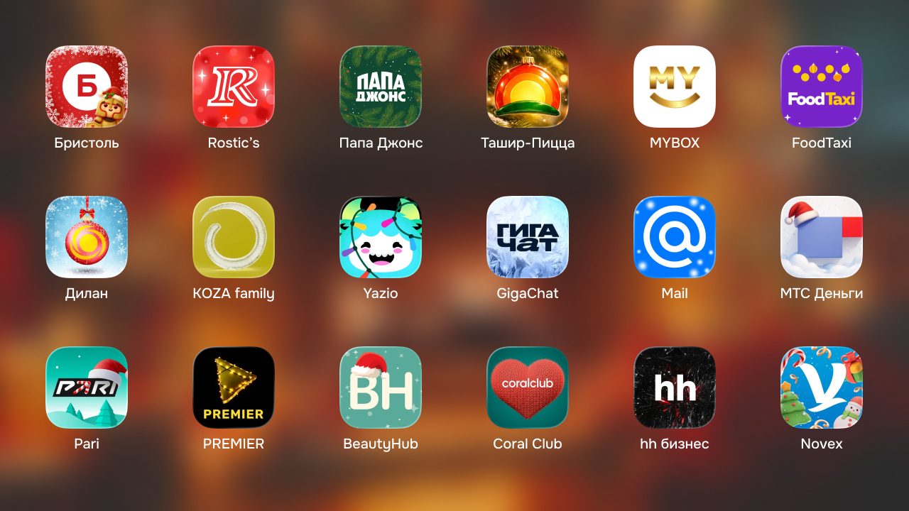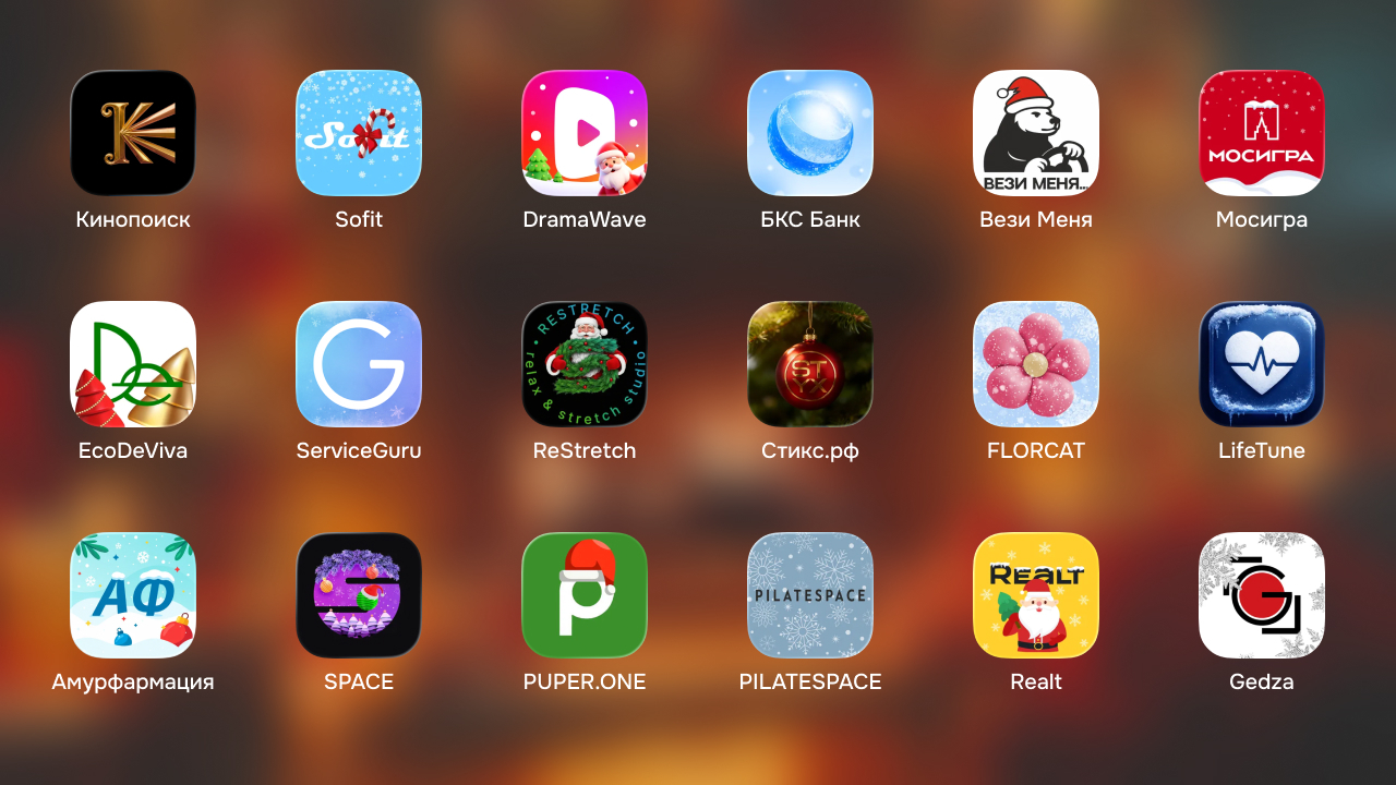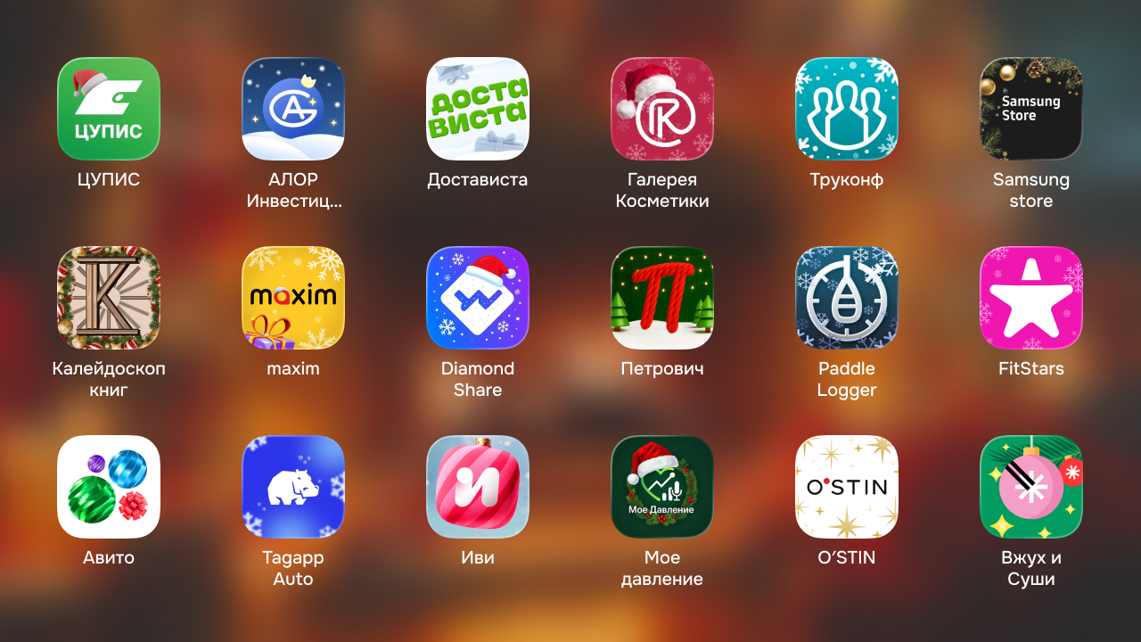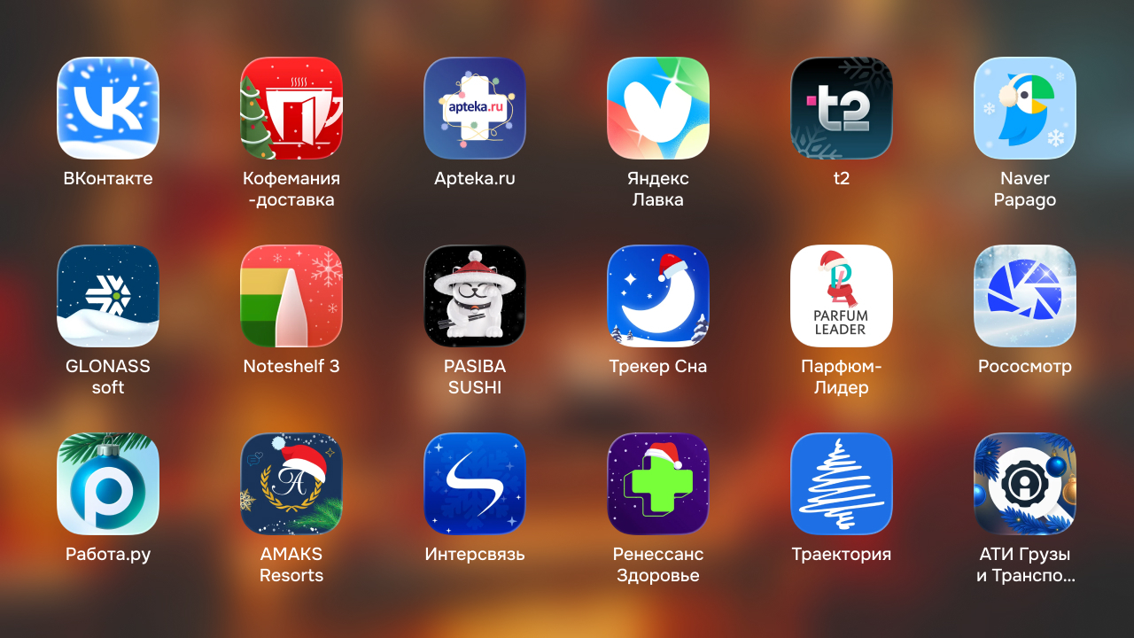 В подборке ощутимо меньше зарубежных приложений. Крупные сервисы вообще не парятся с иконками перед Рождеством. В России же всё иначе, приятно наблюдать, как в таких мелочах наши команды показывают уровень креатива.