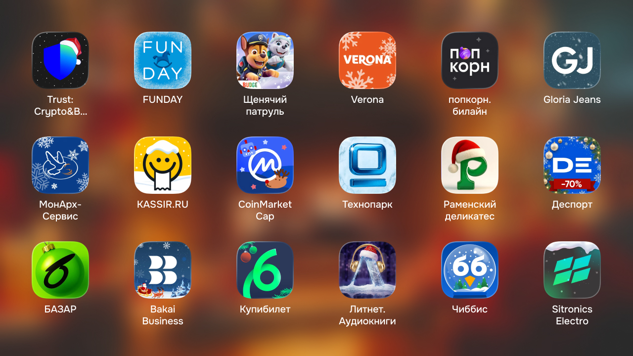 Некоторые приложения обновились заметно раньше остальных, возможно, ещё в конце ноября. Мы начали фиксировать изменения только с начала декабря, поэтому врать не будем. Некоторые бренды меняются на короткий промежуток времени. Обновляются за неделю–полторы до Нового года и сразу после праздников возвращаются к привычной иконке.