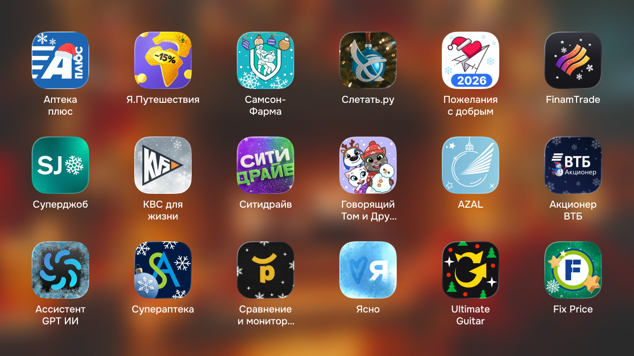 Дизайн-команда айти-агентства Фьюче собирает новогодние иконки приложений уже четвёртый год подряд. За это время подборка превратилась из спонтанной идеи в полноценное ежегодное исследование. Нам интересно наблюдать за реакцией брендов, с помощью каких визуальных приёмов создают праздничное настроение и как меняется коммуникация.