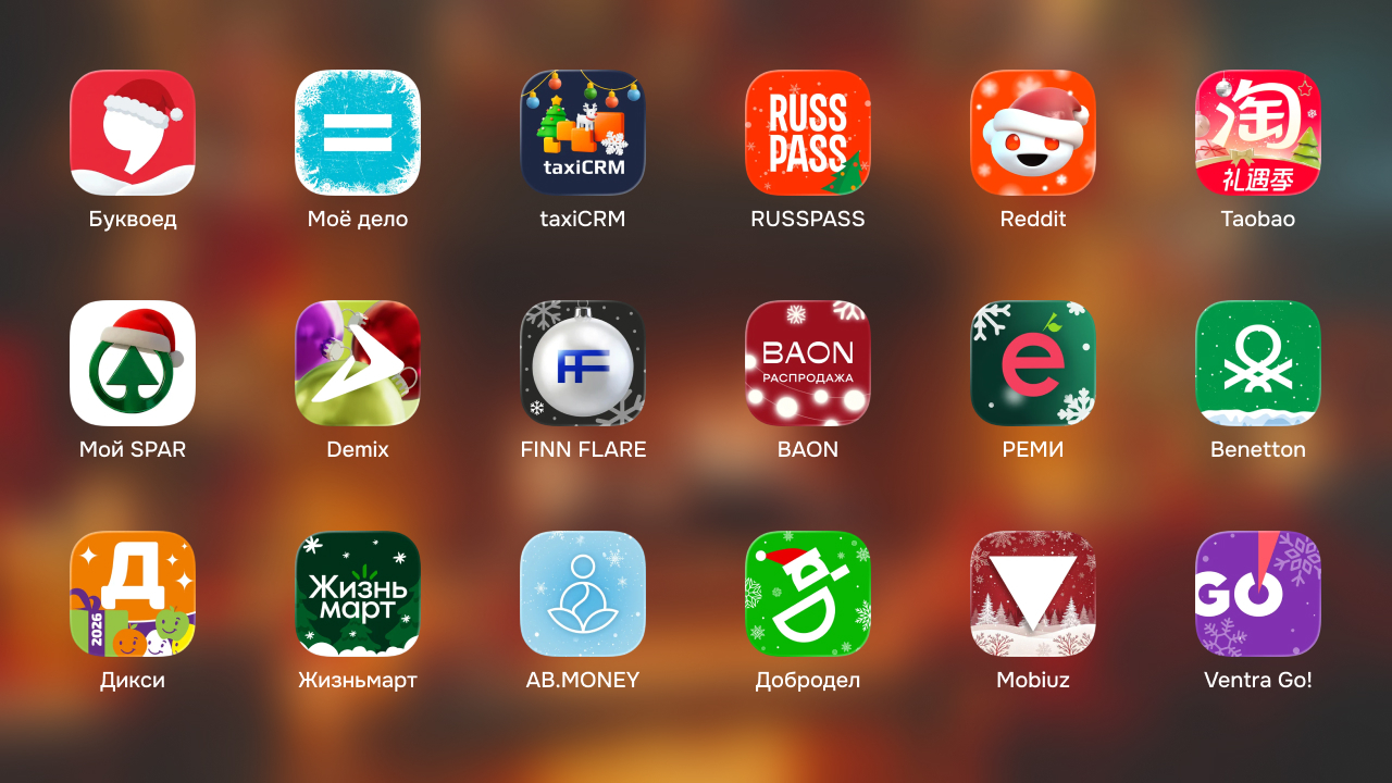 В этом году мы собрали 504 новогодние иконки приложений. Это не просто рекорд для нашей подборки, это показатель того, что сезонные изменения иконок стали частью регулярной коммуникации брендов.