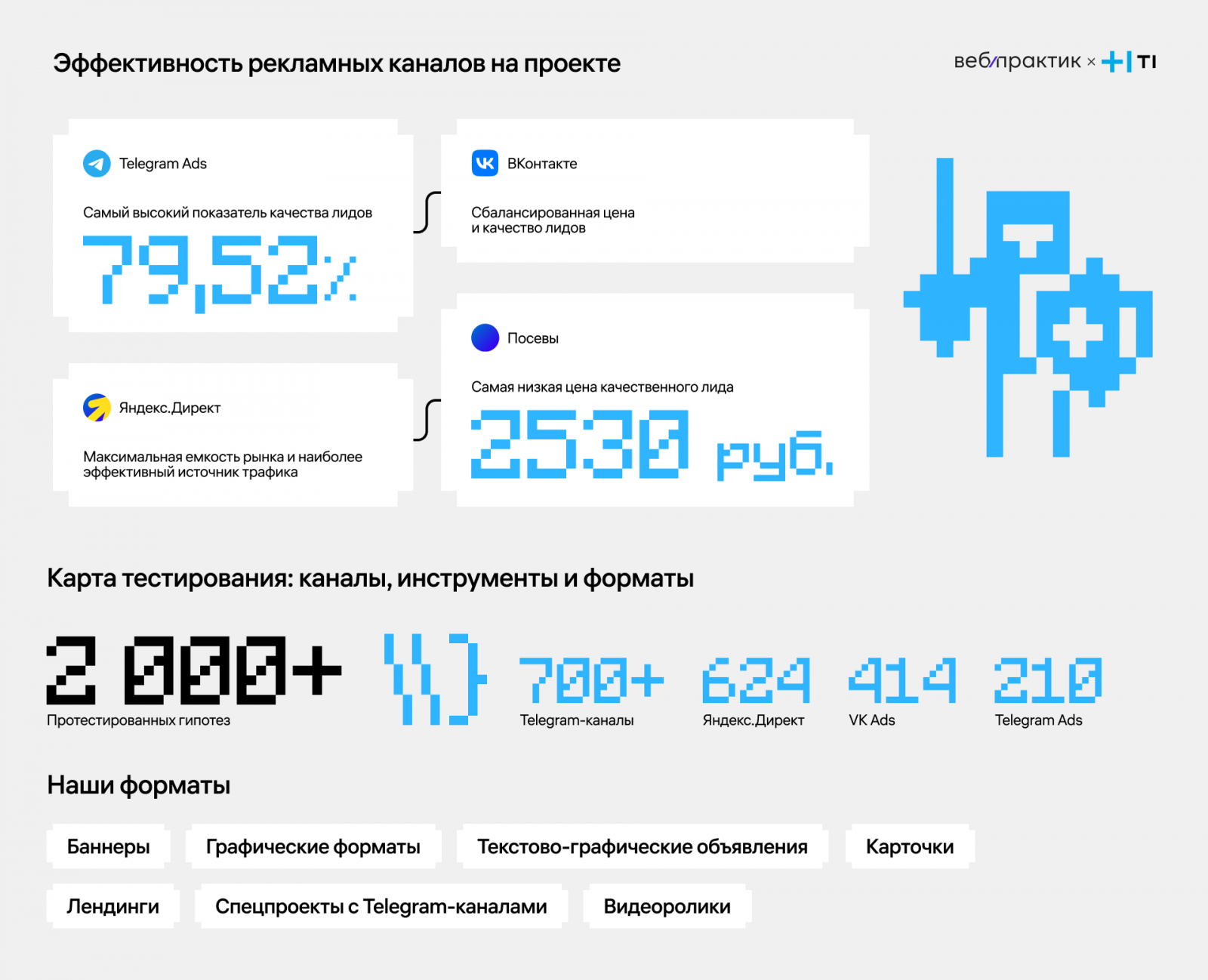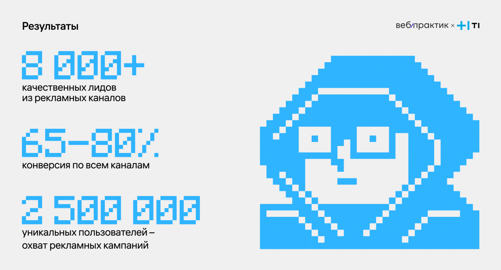 Маркетинговая команда агентства «Вебпрактик» вместе с продуктовой командой ИТ-холдинга Т1 в условиях высокой неопределенности запустили новый продукт в сложной нише. Задача стояла амбициозная: обеспечить стабильный поток заявок в «Открытые школы» и сделать проект заметным на рынке. При этом продукт только формировался, целевая аудитория — узкая, а требования к кандидатам — высокие. Спойлер: мы справились. Полную версию кейса можно посмотреть на нашем сайте — там подробно рассказываем, как всё было.