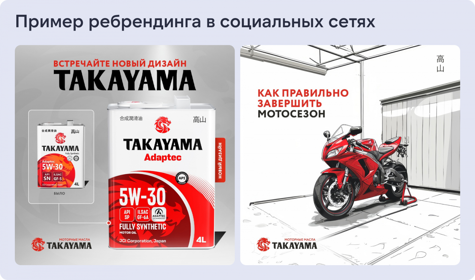 Есть хороший пример. Производитель моторных масел TAKAYAMA перешел от стандартных картинок к иллюстрациям в стиле японских комиксов. Визуал стал живым и отражающим позиционирование бренда.