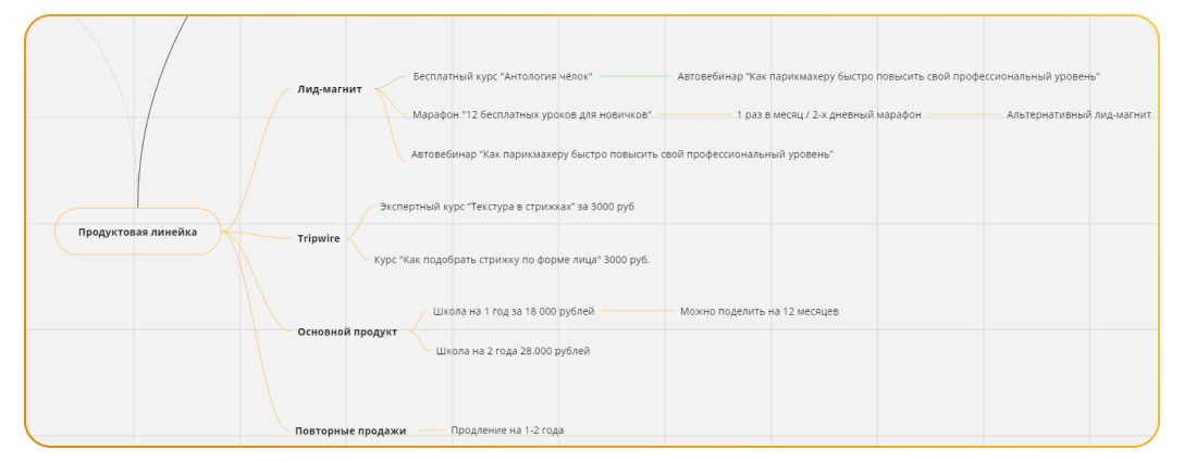 Также у мастера есть небольшие курсы, которые занимают следующую позицию в воронке продаж — трипваеры. Это два небольших тематических курса по невысокой цене, на покупку которых решиться легче, чем на оплату годового обучения. Это второе соприкосновение с нашим экспертом для тех, кто уже посещал бесплатный вебинар, но для покупки большого курса пока не прогрет.
