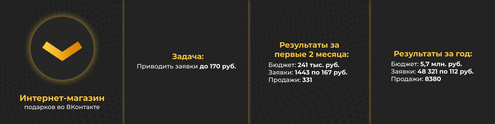 Год назад рассказывали о результатах работы с компанией, которая работает в нише подарков. Продолжаем продвигать этот проект, и каждый месяц улучшаем результаты. За год выручка заказчика из ВКонтакте составила более 60,7 млн рублей.