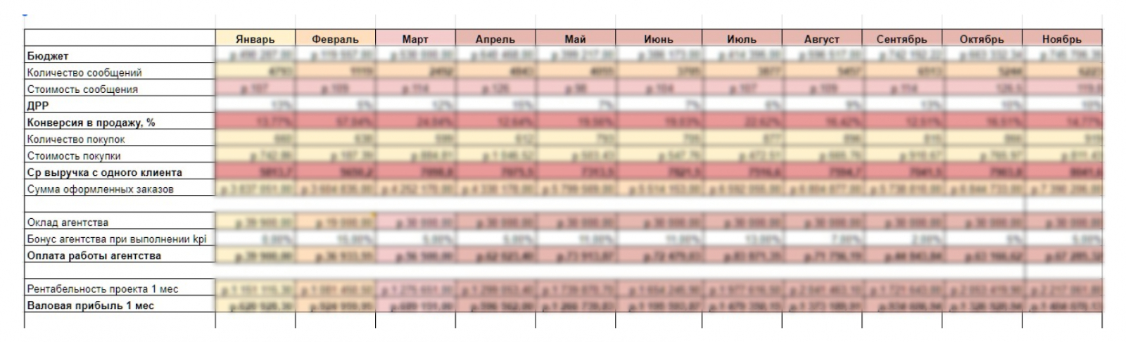 В конце каждого месяца созваниваемся с заказчиком. Смотрим на долю рекламных расходов, понимаем, за счет чего трафик окупается и исходя из анализа распределяем бюджет на следующий месяц и ставим планы.