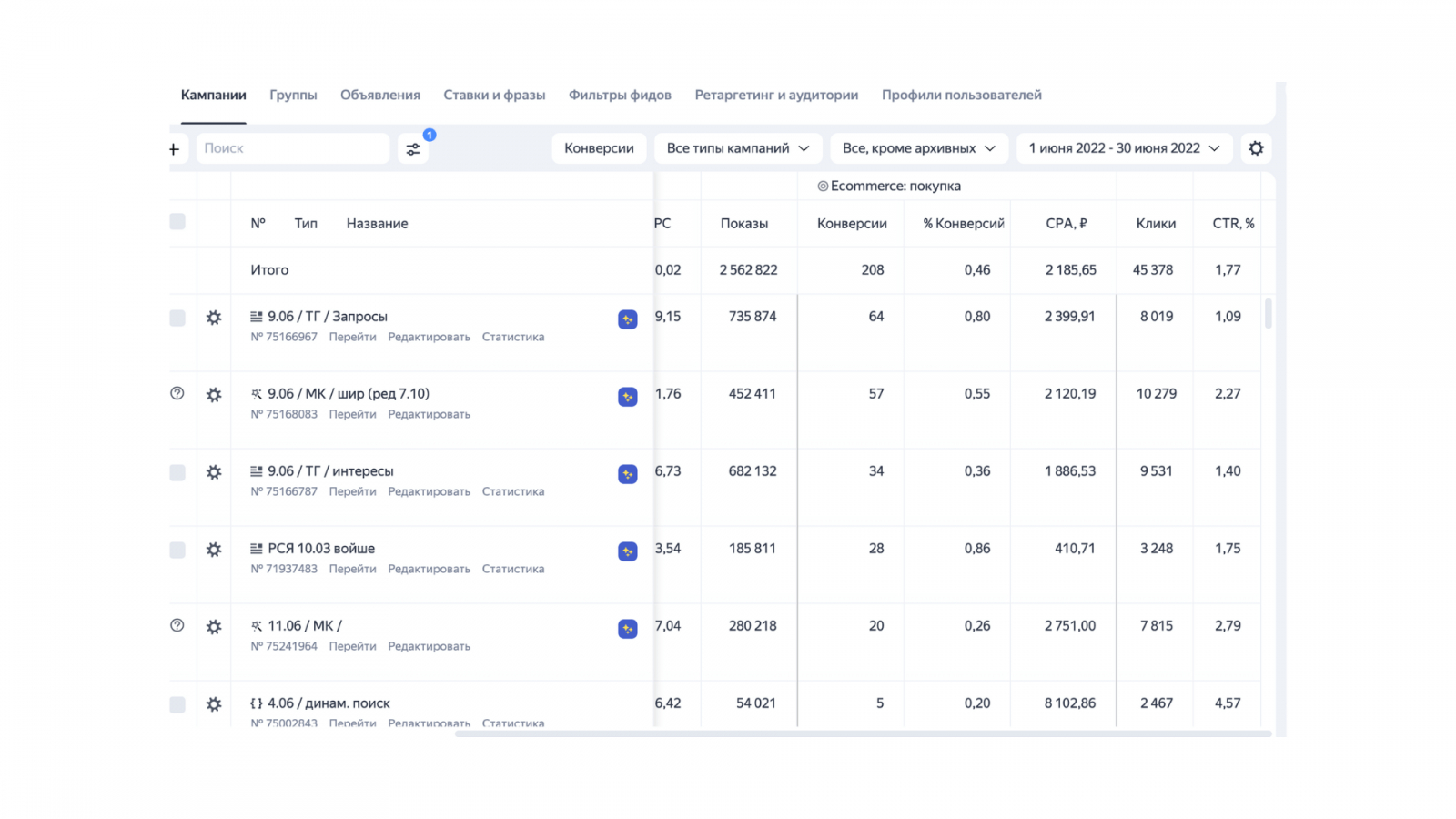Как правило, не все группы объявлений отрабатывают себя хорошо, и в июне нашей задачей было понять, какие аудитории и настройки могут дать целевой результат.