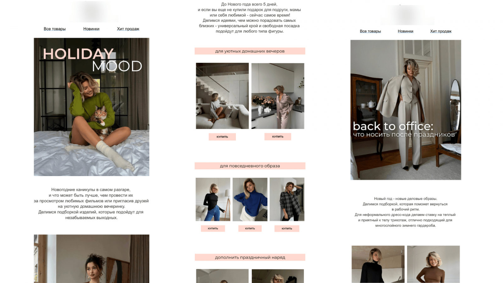 Одним из важнейших правил рассылок, является индивидуальный подход к подписчикам. Анализируйте данные о своих клиентах и покупателях, оптимизируйте рассылки, которые будут соответствовать всем требованиям и интересам, что в конечном итоге будет приводить к совершению покупок. Учитывайте предпочтения клиента, используя добавления в корзину клиентов, праздники (например, день рождения подписчика), как повод обновить гардероб к важному событию, лишним к такому событию не будет и добавить скидку/промокод на заказ, с определенным сроком действия.