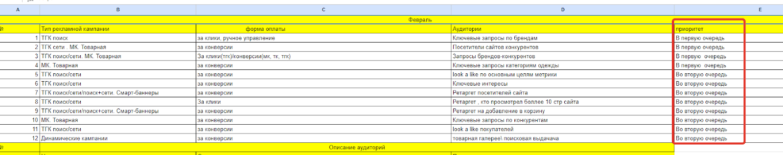 Пример нашего упрощённого плана запусков. Это минимум, для успешной работы кампаний, но никто не запрещает сделать его подробнее, углубиться.