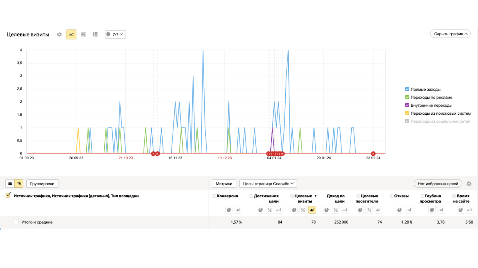Стоит упомянуть, “прямые заходы” в Яндекс Метрике это и есть реклама с Telegram, так их расценивает сама Метрика. Других источников рекламы кроме Яндекс.Директ и Telegram Ads у клиента не было.