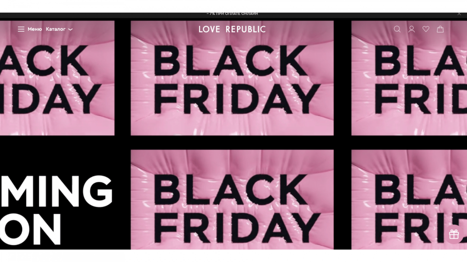 Пример из сети: оформление главной страницы бренда к Черной Пятнице