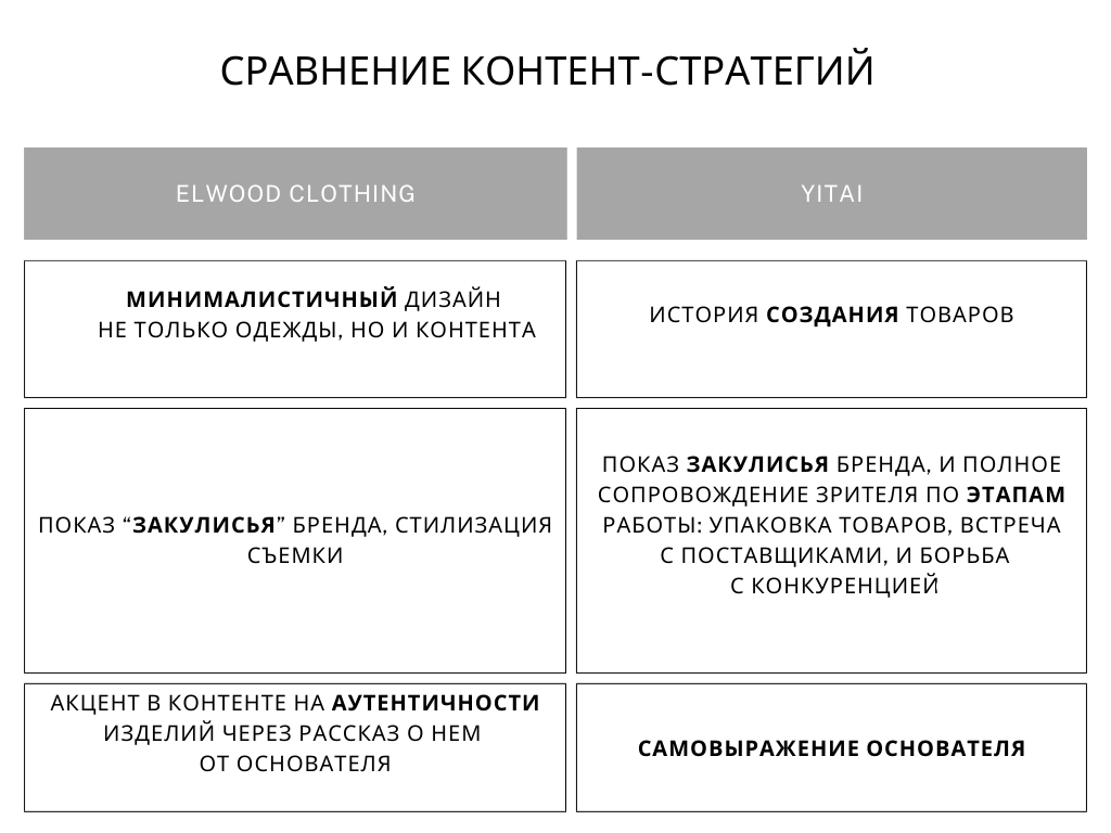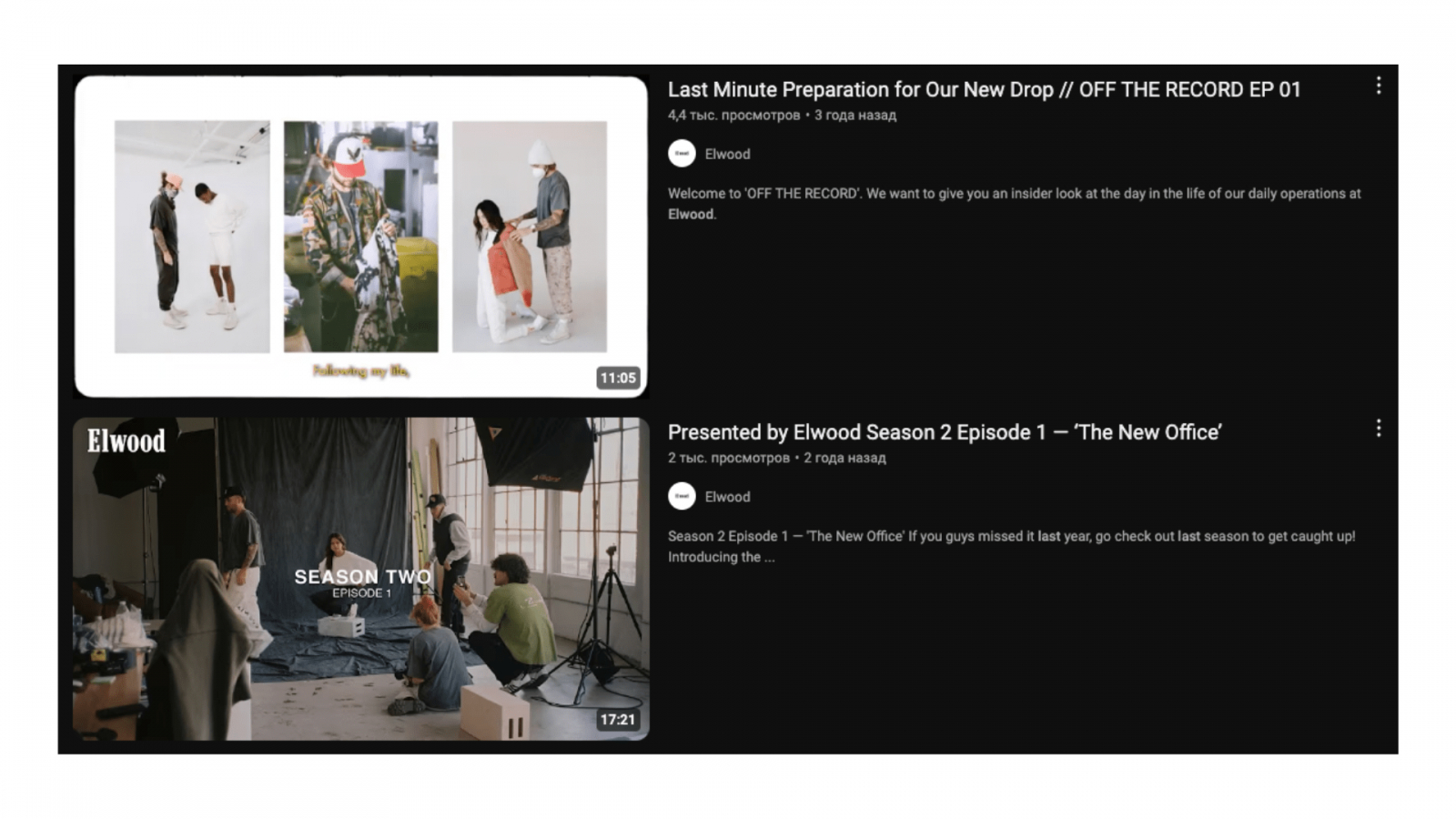 Это связано с тем, что цель Elwood Clothing — стать самым удобным брендом на рынке, их стиль одежды продуман так, чтобы создать капсульный, удобный и сдержанный гардероб. И стиль одежды своего бренда они также отражают в выпускаемом контенте: сдержанные цвета, минимум деталей, минимализм и простота показа одежды. Контент дополняет их философию, и передает ее зрителям.