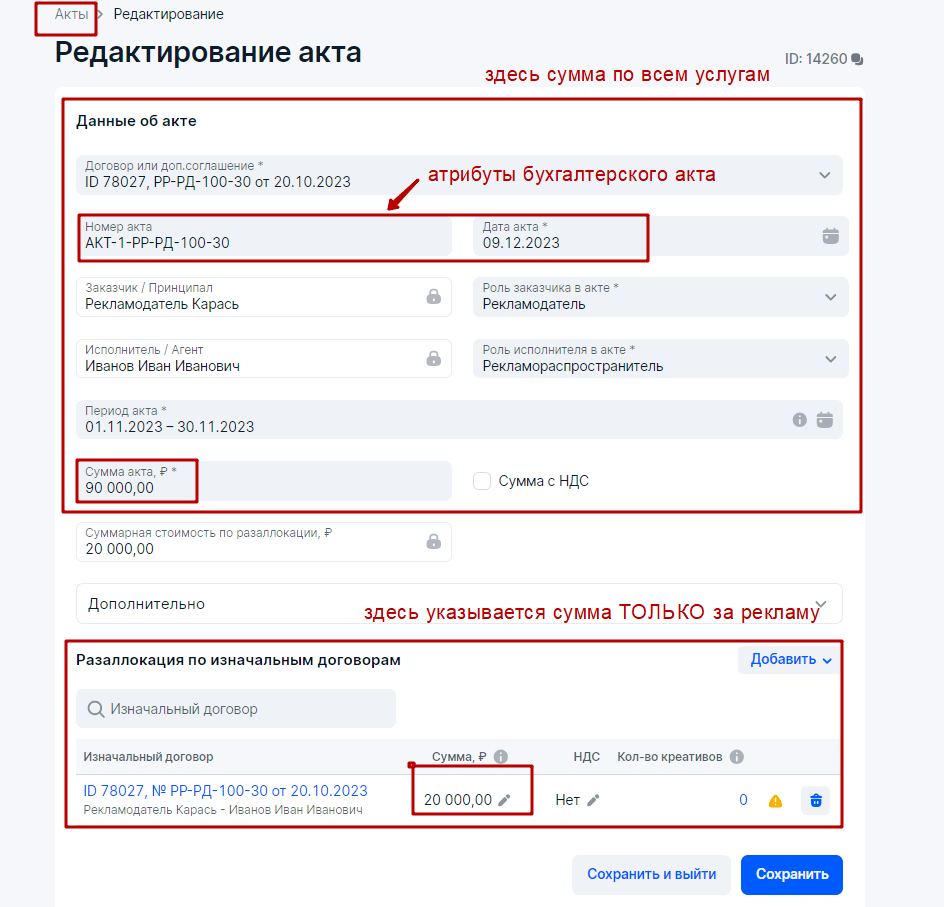 При сотрудничестве подрядчиков (рекламные агентства, фрилансеры, блогеры) с заказчиками (рекламодатель) часто выставляется общий счет за все виды работ без его детализации в договоре по отдельным услугам. Однако при оформлении акта в ОРД (оператор рекламных данных) требуется производить разаллокацию по изначальному договору, где должна быть указана сумма именно за рекламное продвижение.