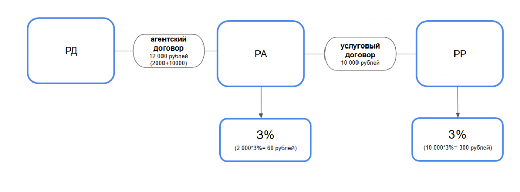 В итоге, РА по данному кейсу заплатит рекламный сбор за всех, так как агентство получает доход по договору оказания услуг между РД и РА, а РР ничего платить не будет, так как всю необходимую сумму по рекламному сбору для текущей рекламной цепочки оплатит РА
