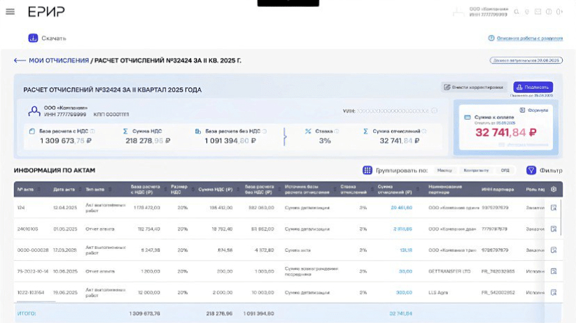 Рекламный сбор подлежит уплате ежеквартально, начиная со второго квартала 2025 года, согласно НПА от Роскомнадзора. Платежный процесс выглядит следующим образом: