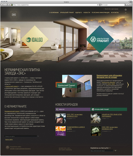Нашей студией завершена разработка веб-сайта торговых марок «Идальго» и «Уральский гранит» для ООО «ЗКС», завода по производству керамического гранита в г. Снежинск, Челябинской области. Предприятие выпускает продукцию под двумя торговыми марками:
