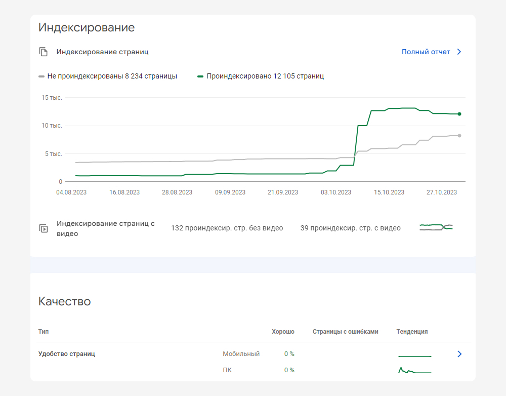 После того как мы настроили корректную индексацию всех интересующих нас страниц, пришло время собирать статистику и анализировать полученные данные. И в этом нам как всегда помог вебмастер, причем его необходимо устанавливать для обоих ПС. Дело в том, что из-за разницы в скорости обхода страниц сайта и алгоритмов ранжирования одни и те же страницы будут по разному отображаться в поиске и на разных позициях. Однако здесь мы можем оперативно узнавать о критических проблемах, которые могут серьезно повлиять на нашу работу.
