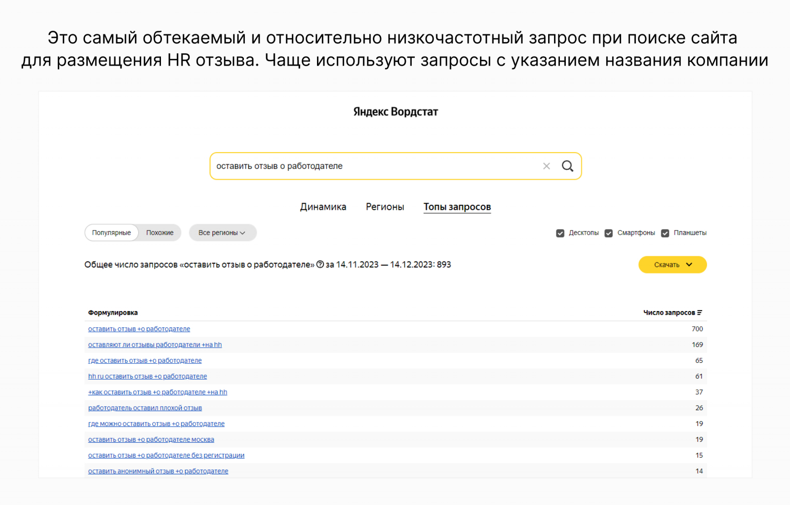 Это пример только одного запроса, цель которого – разместить отзыв о работодателе.
