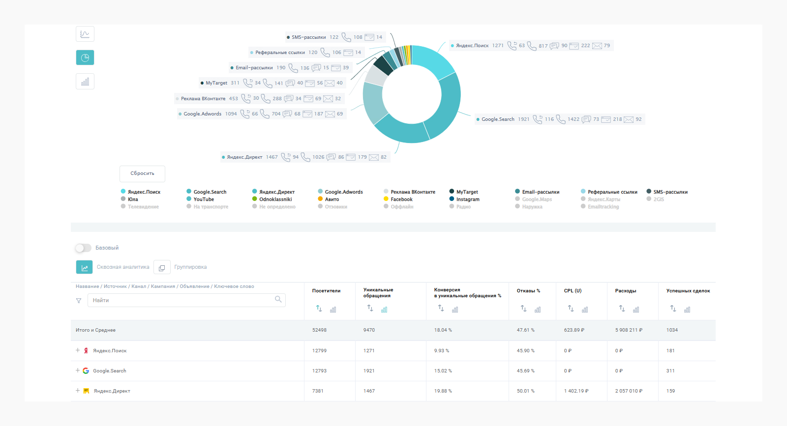 Допустим, у вас рекламные кампании в Яндекс.Директе, Google Ads, Таргете ВКонтакте, плюс органический трафик из SEO и соцсетей. Клиенты звонят, пишут в мессенджеры, заполняют формы на сайте… Но, как понять, откуда пришел самый платежеспособный клиент?