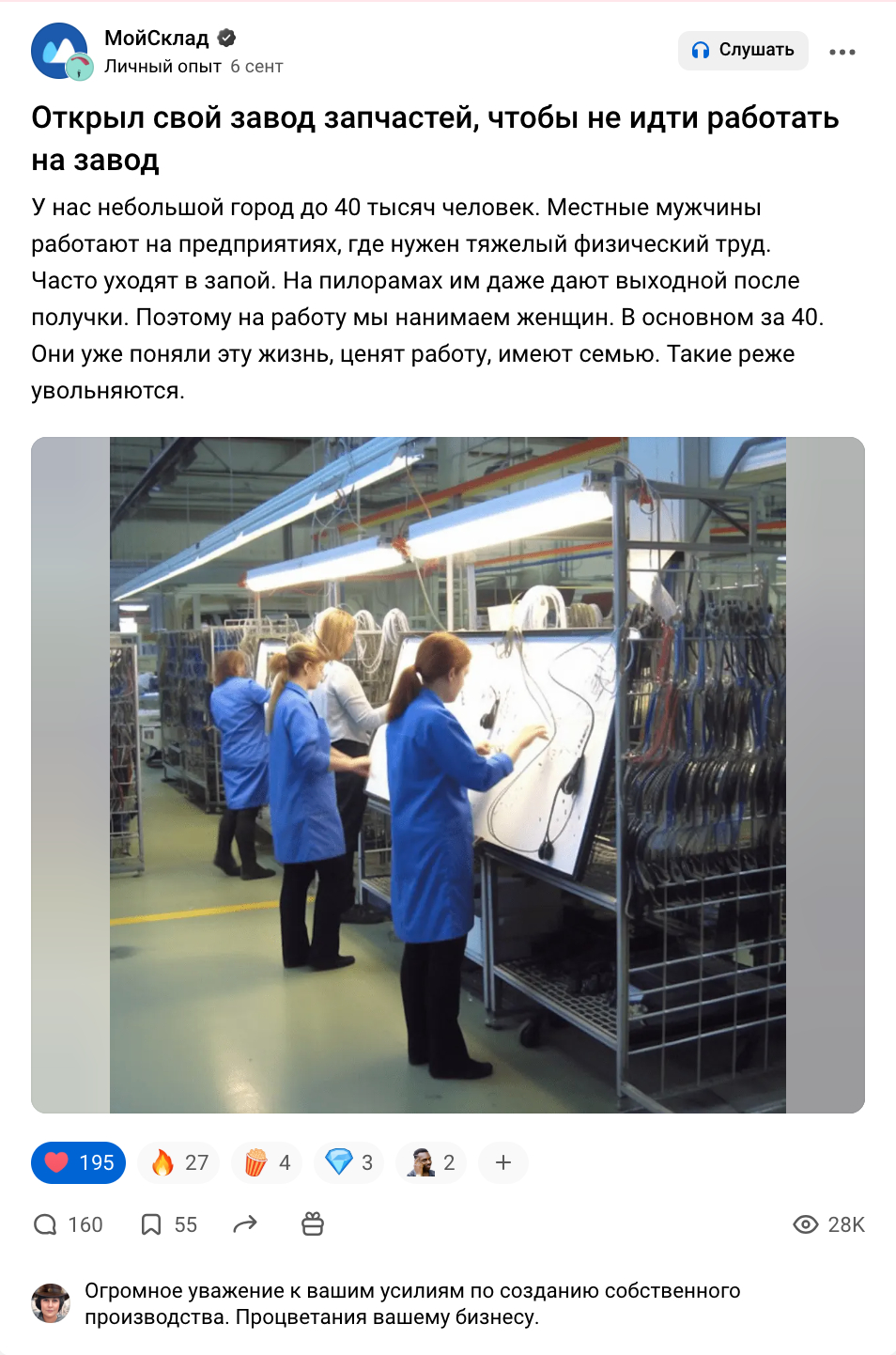 — интересная сфера (не услуги, легко повторить),