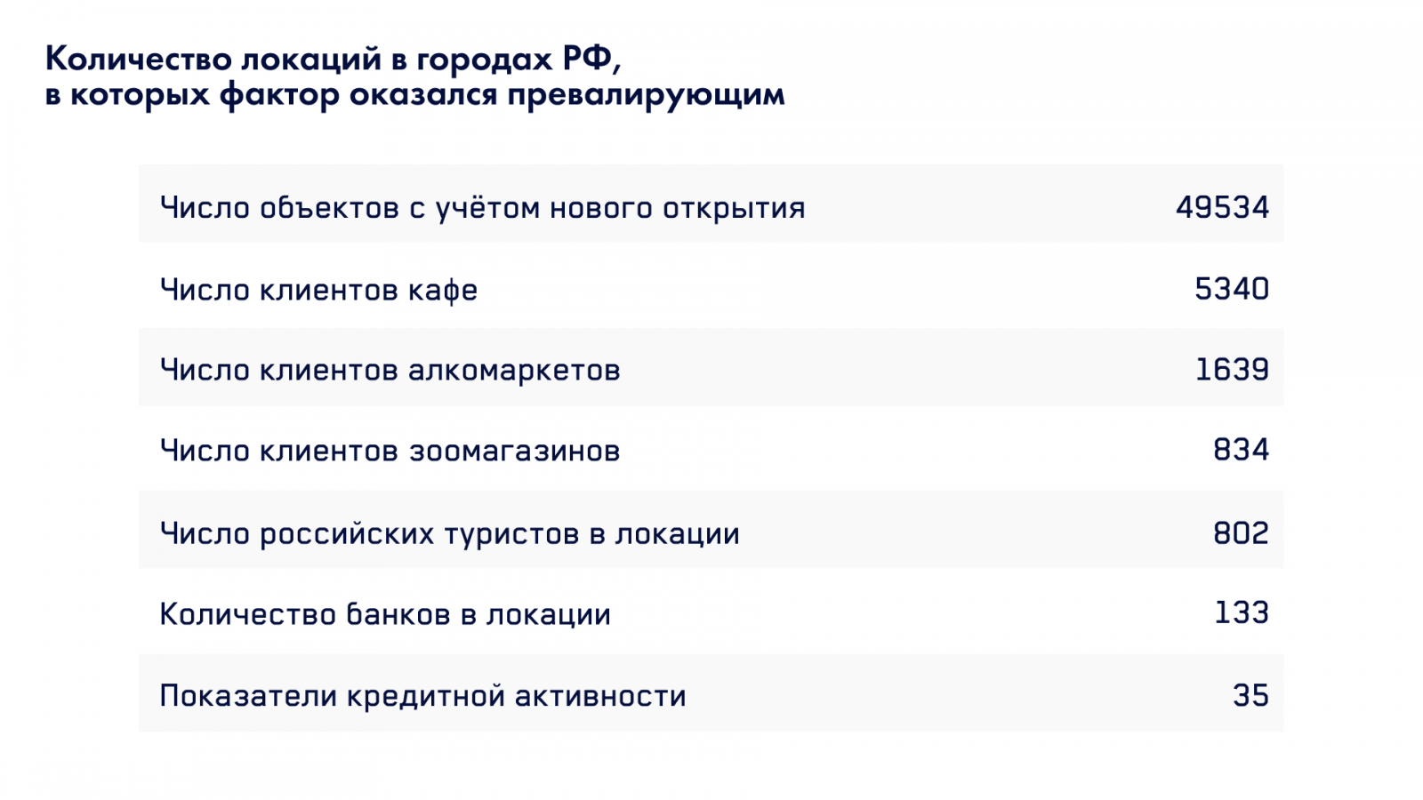 Также с помощью анализа геоданных бизнесмен может найти прибыльные и неочевидные локации, которые просмотрели конкуренты. А еще аналитика поможет провести переоценку эффективности бизнеса если рядом, к примеру, строят большой торговый центр.