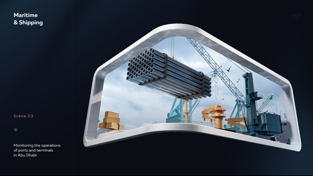 Основной задачей в этом проекте было разработать CG-контент, который наглядно отразил бы масштабы и разнообразие деятельности Ad Ports Group. Ролик должен был рассказывать о пяти основных направлениях деятельности компании: Economic cities & Free zones, Logistics, Ports, Maritime & Shipping и Digital.