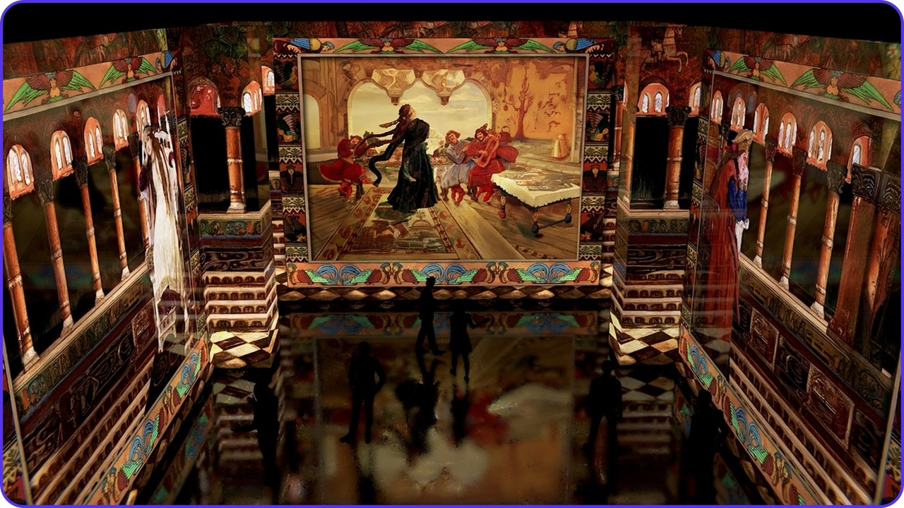 Павильон “Карелия” на ВДНХ открылся после реставрации масштабной мультимедийной выставкой – с помощью мультимедийных технологий на стенах оживают полотна Васнецова, Шишкина, Айвазовского и других великих русских живописцев конца XIX – начала XX. Выставка посвящена народным сказкам и былинам и предлагает зрителю путешествие по волшебной стране, созданной художниками. Она разделена на несколько смысловых блоков, формирующих уникальный опыт: русские просторы, путь героя, обретение града. Экспозицию дополняет звуковое сопровождение, например, шорох листьев в лесу или шум ветра в поле, а также голосовая дорожка, записанная известным артистом Сергеем Чонишвили. Выставка предлагает по-новому взглянуть на знакомые всем шедевры и будет интересна самому широкому кругу зрителей.