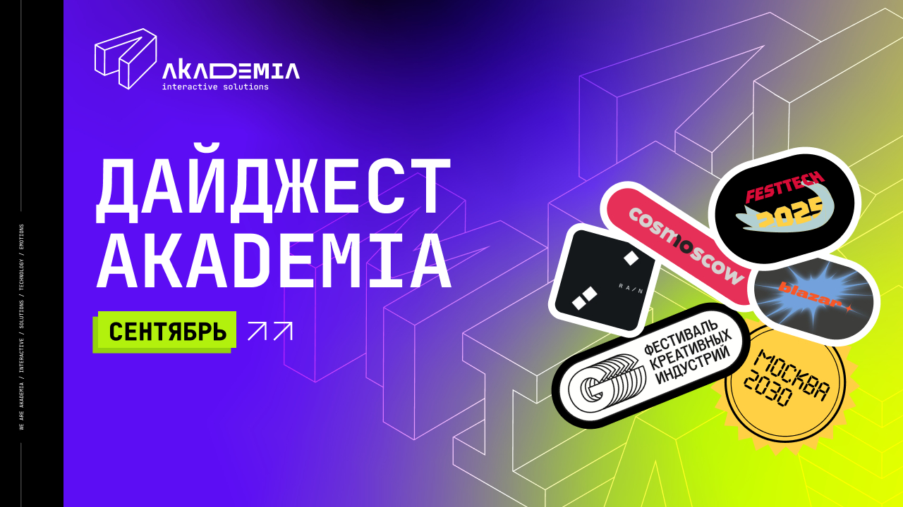 Всем любителям науки и технологий стоит отправиться в музей “Атом” на открытый фестиваль от МФТИ. Программа состоит из четырех направлений: “Наука и образование”, “Популяризация”, “Бизнес и IT” и “Наука и искусство”. Посетители смогут послушать лекции о квантовых технологиях, накопителях энергии, и также достижениях современной физики и сферы IT, а вечером всех ждет музыкальная программа под открытым небом. В одном из конференц-залов вас будет ждать инсталляция от студии Akademia – обязательно приходите посмотреть!