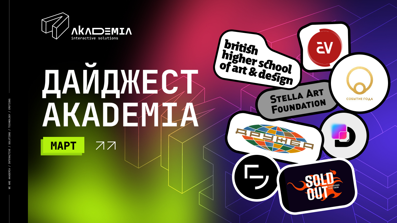 Март – первый месяц весны; птицы начинают петь, почки распускаться, и профессиональный календарь не отстает. Мы – в Akademia собрали для вас события, которые стоит добавить в заметки: от AV-форумов и дизайн-фестивалей до мультимедийных выставок и музыкальных опен-эйров.