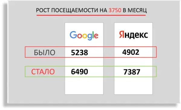Чтобы не быть голословной в плане успешности проектов, сразу обозначим результаты проведенной нами работы, а потом перейдем к разбору методов SEO-продвижения.