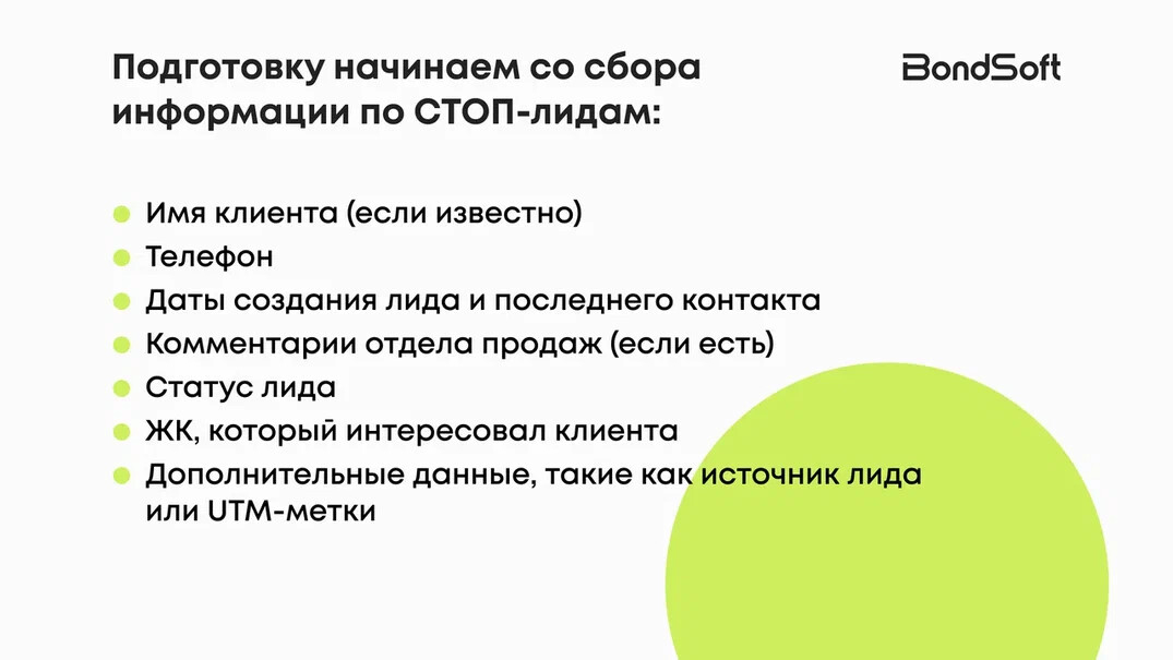 Сначала мы выясняем, с какими лидами имеем дело. Предварительно проверяем признаки “живых” клиентов, которые есть в нашей партии СТОПов.