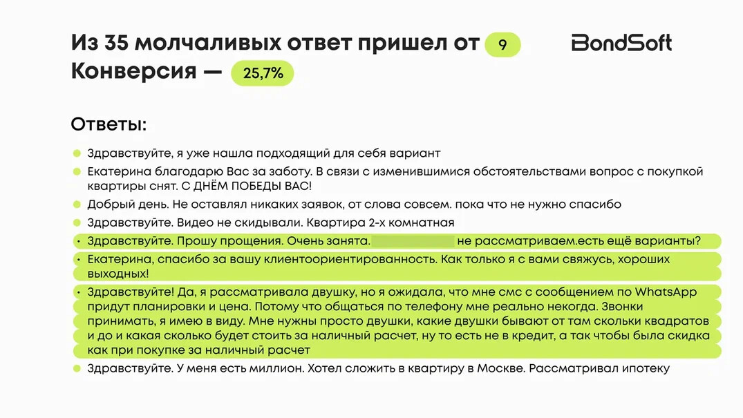 На второе сообщение нам ответили еще 9 потенциальных покупателей!