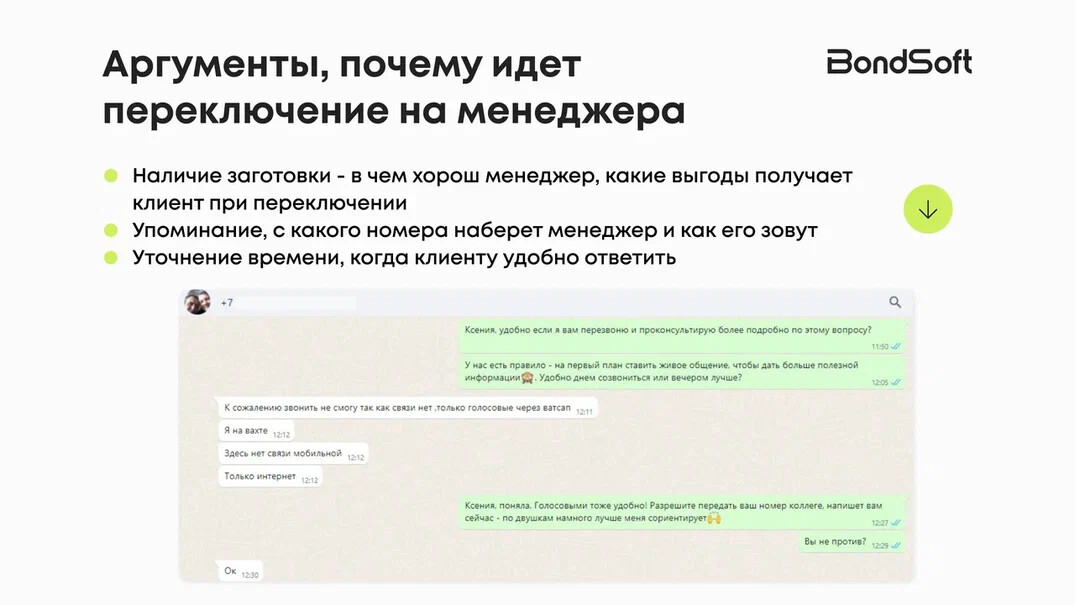 Самым сложным оказалось переключить клиента на менеджера. Важно было четко обосновать преимущества такого шага, подчеркнуть профессионализм и готовность менеджера предложить оптимальные условия.