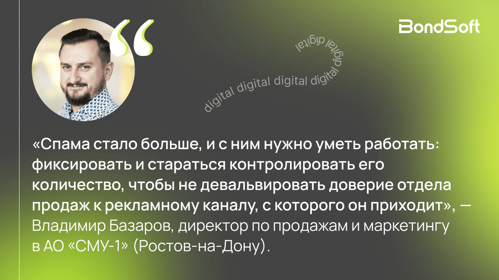 «Спама стало больше, и с ним нужно уметь работать: фиксировать и стараться контролировать его количество, чтобы не девальвировать доверие отдела продаж к рекламному каналу, с которого он приходит», — делится Владимир Базаров, АО «СЗ «СМУ-1».