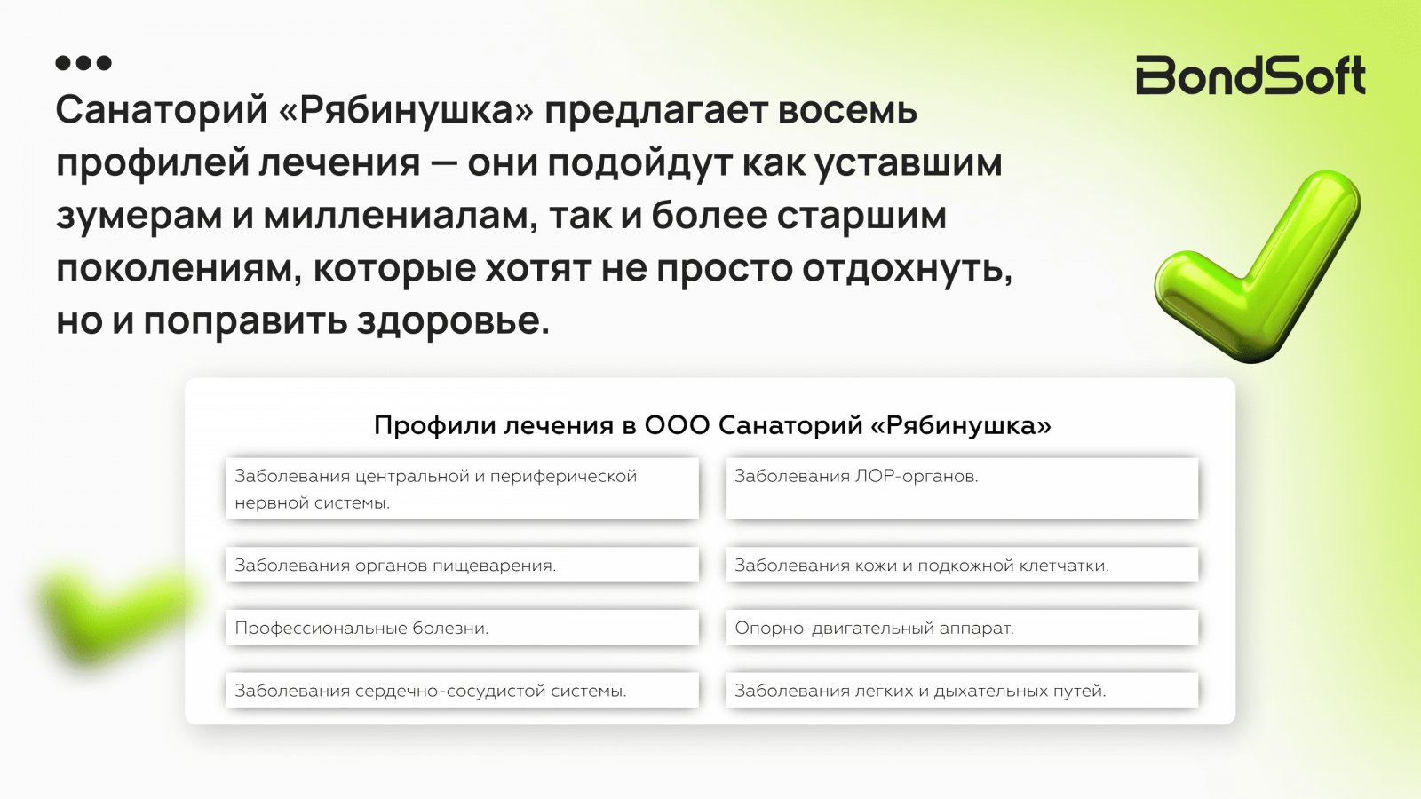 «У нас есть все для отдыха без выхода за территорию: подогреваемые бассейны с горками, водные аттракционы, SPA, сауна, хамам, лечебные программы, детский клуб, мастер-классы, вечерние шоу, анимация и даже библиотека с шахматами — гости точно не заскучают», — делится команда санатория «Рябинушка».