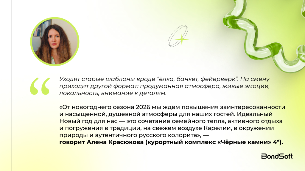 Сезон-2026 показал: загородный сегмент перестал жить по шаблону «банкет — ёлка — фейерверк». Каждый регион строит свой новогодний продукт — осознанно, заранее и под конкретную аудиторию.