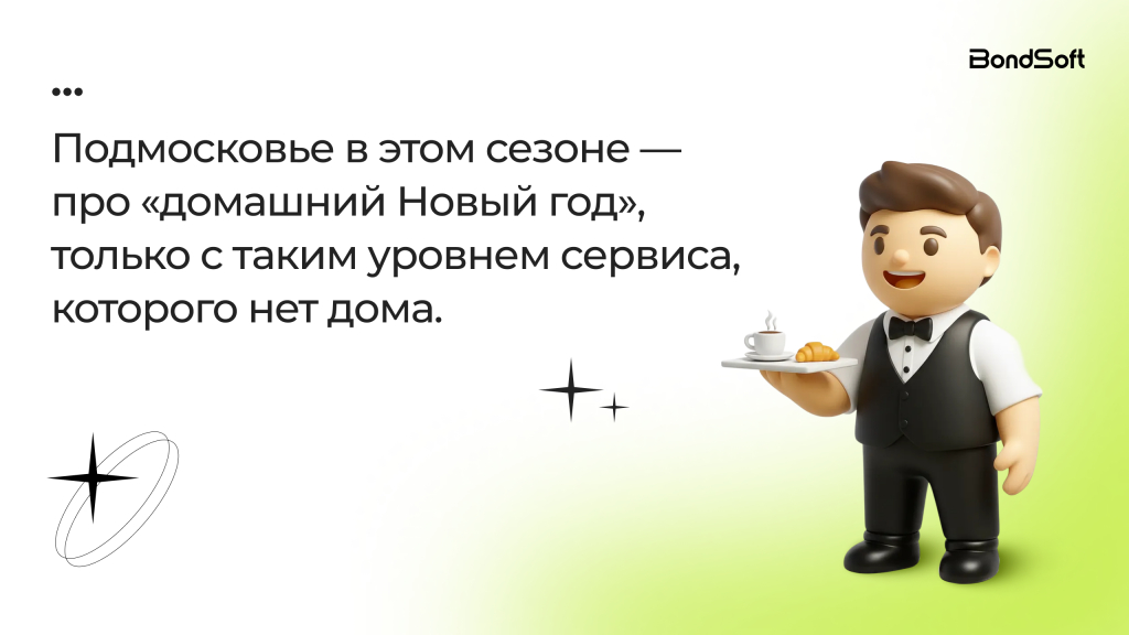 Подмосковье в этом сезоне — это про «домашний Новый год», но с уровнем сервиса, которого дома не получить.