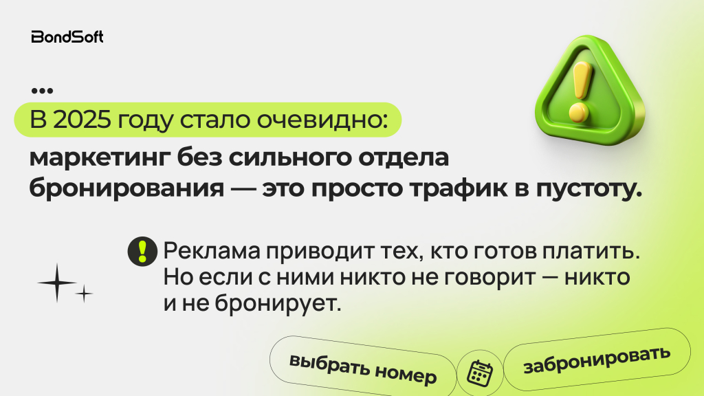 Продажа начинается дальше — в диалоге с гостем, в условиях бронирования, в доступных квотах и в том, как именно отдел продаж работает с входящими обращениями. И если между маркетингом и продажами нет связки, реклама почти неизбежно начинает выглядеть неэффективной — даже когда она выполняет свою задачу.