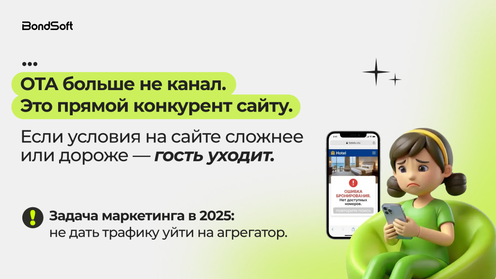 Поэтому в 2025 году задача маркетинга формулируется жёстко, но честно: не пустить гостя на агрегатор.