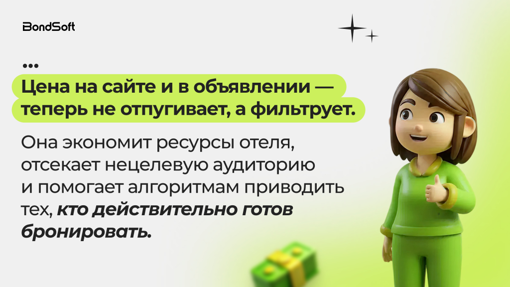 Одна из ключевых трансформаций 2025 года — смена роли рекламы. Сегодня рекламное объявление не продаёт отель. Оно отсекает нецелевую аудиторию ещё до клика. И это не минус, а большое преимущество.