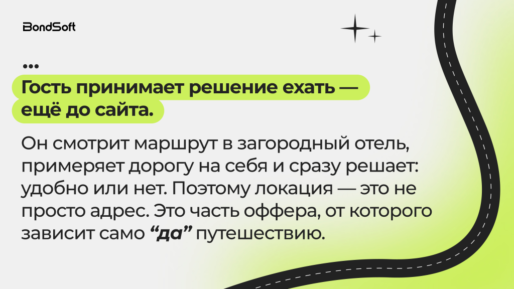 По факту решение часто принимается ещё до сайта.Гость смотрит маршрут, оценивает расстояние, примеряет дорогу на себя — и только потом идёт дальше.