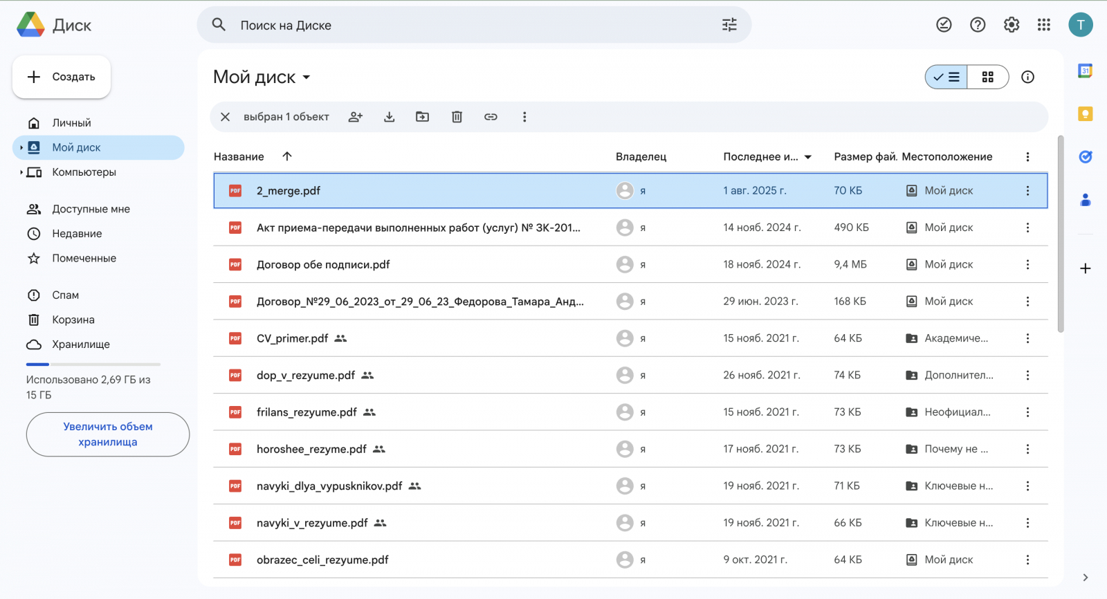 Шаг 1. Загружаем PDF-файл в Google Диск: