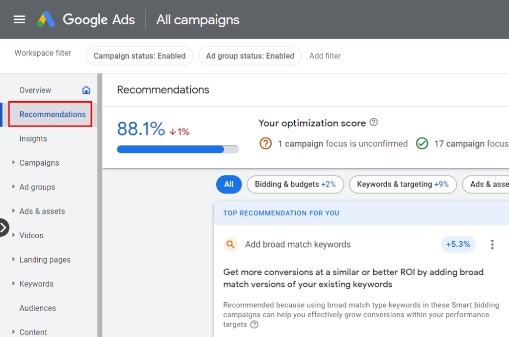 Еще есть страница «Рекомендации», где прописаны советы, касающиеся оптимизации цены за клик. Там можно найти вариант, подходящий для вашей ситуации.