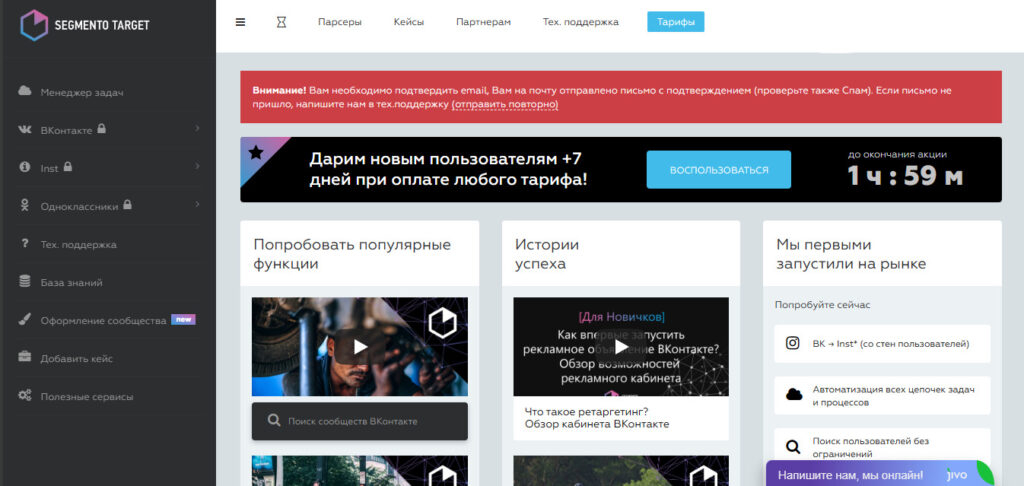 Segmento target — это парсер для работы с Вконтакте, Одноклассниками и Instagram*.