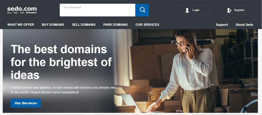 Sedo — это международная биржа с большим количеством доменов. Она работает по принципу аукциона: пользователь обозначает цену за размещение и ждет подходящие предложение от рекламодателей. В интерфейсе сервиса можно разобраться за несколько минут. А полученные средства выводятся от $100.