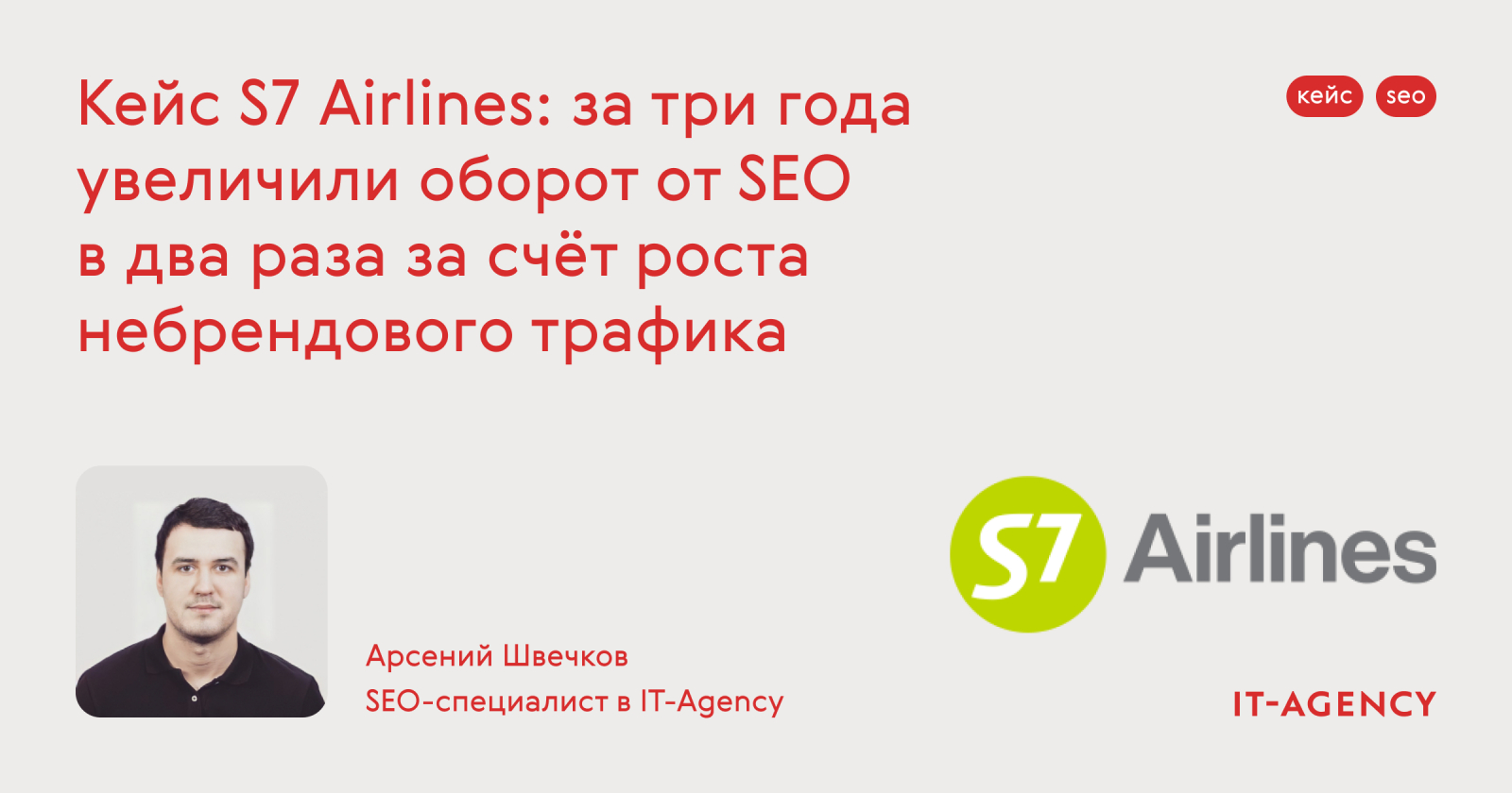 Для меня было важным и приятным приложить руку к такому бизнесу, помогая им с той зоной, где на тот момент я был экспертом, а именно — SEO. Мне нравится работать с классным бизнесом, у которого крепкая миссия, хороший и сильный бренд, и это всё не только задекларировано где-то, а чувствуется в реальности, когда ты заходишь на борт самолёта или в офис S7 Airlines. Поэтому, когда ребята к нам пришли, я очень обрадовался и знал, что мы точно сможем помочь. Знал, что у них есть возможность конкурировать с агрегаторами и хорошие точки роста для конкуренции с другими авиакомпаниями.
