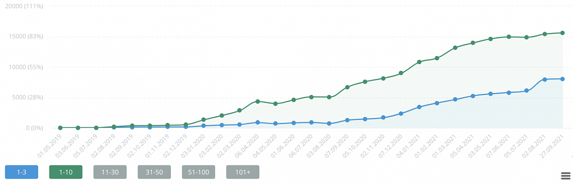 Эти шаги помогли интегрировать страницы направлений в структуру сайта, в результате чего позиции S7 Airlines в Google начали расти. По сравнению с 2019 годом позиции выросли на 83 % — некоторые поисковые запросы стали попадать в топ–3, а большая часть — в топ–10.