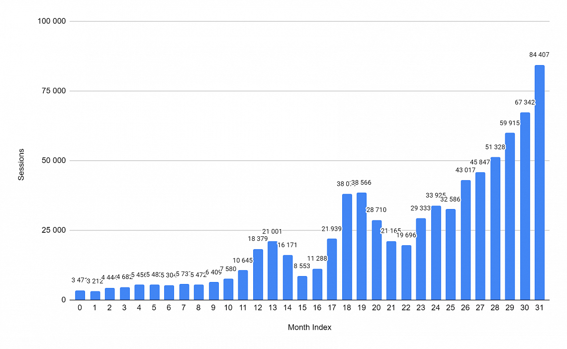 На старте весь блог приносил в среднем около 10 тысяч переходов в месяц. Сейчас одна статья «Что можно взять в ручную кладь» в среднем приносит около 12 тысяч переходов и до 20 тысяч в пике.