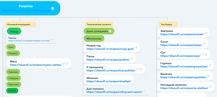 Избежали проблем с техническим дублированием страниц. С новой категоризацией некоторые рецепты одновременно относились к разным категориям. Например, страница с рецептом салата с курицей, черносливом и грецкими орехами находится в категориях «Салаты», «Птица», «Курица». Если сделать три одинаковые страницы под каждую категорию, то это отрицательно скажется на месте в поисковой выдаче. Дело в том, что поисковые роботы хуже ранжируют страницы, дублирующие контент.