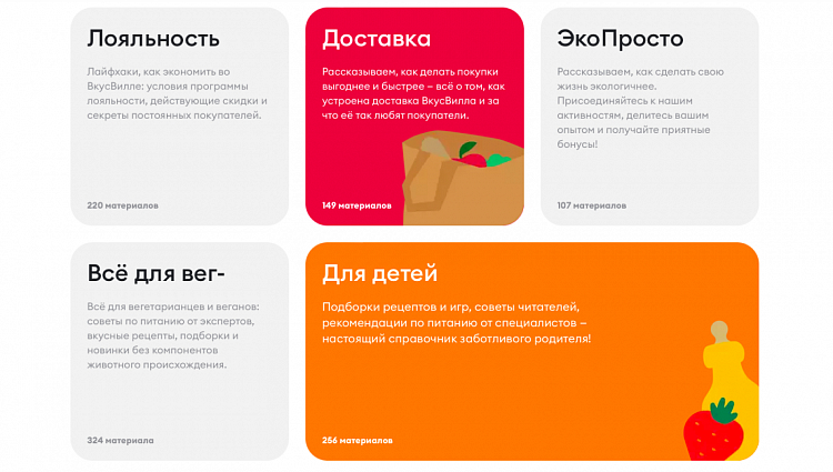 В итоге получилась понятная структура рецептов, которая помогает читателям лучше ориентироваться в разделе, а бизнесу — продвигать идею здорового питания и большого ассортимента.