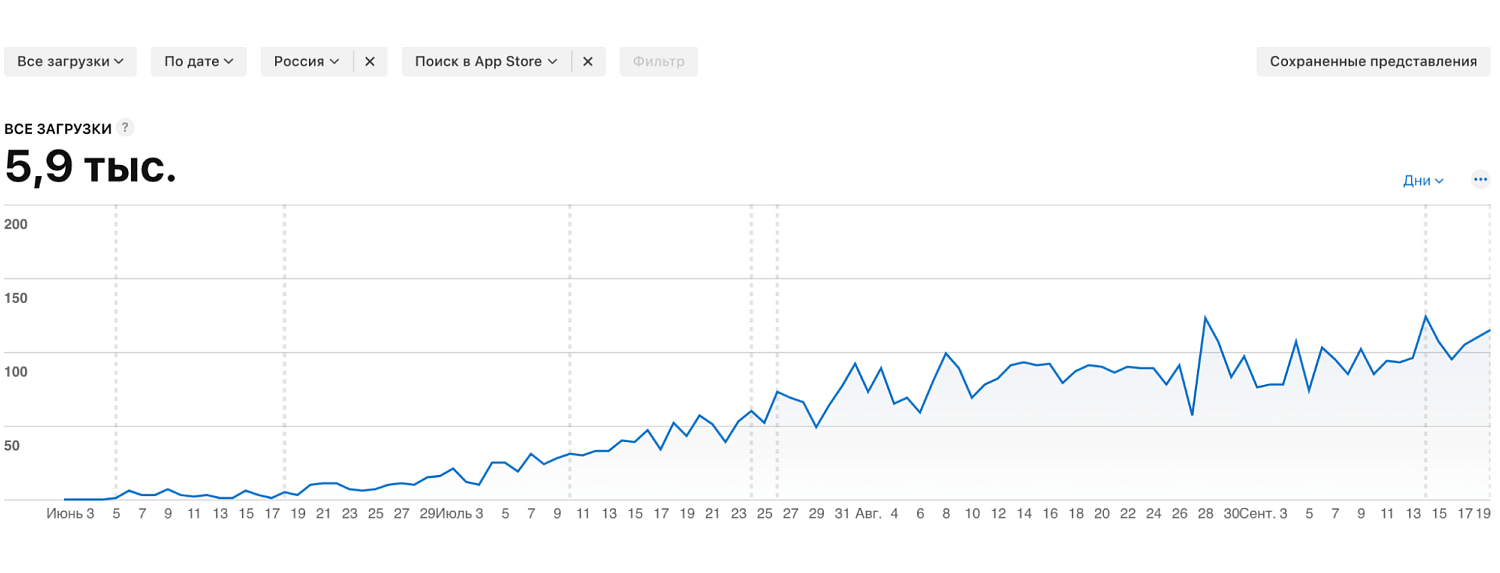 В последующие обновления мы также планомерно наращивали объём ядра, за счёт чего росла видимость приложения в сторах, а, соответственно, и количество установок.